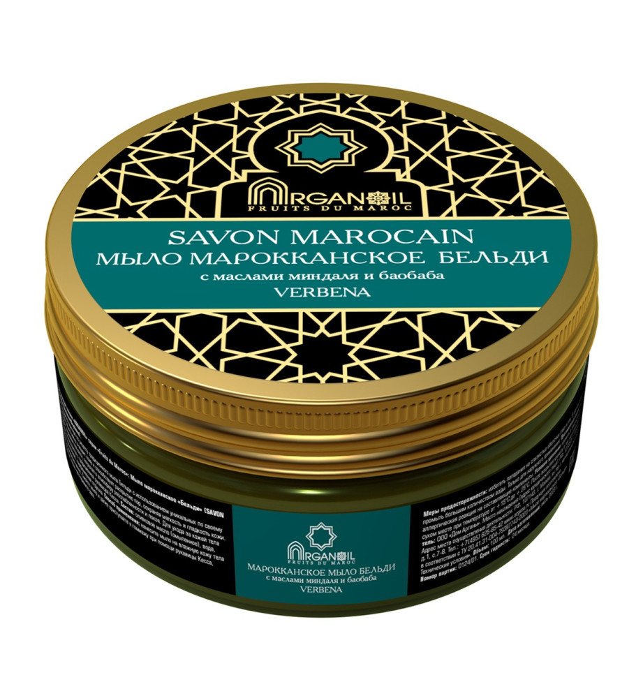 Средство косметическое гигиеническое моющее марки "ARGANOIL" серии "Fruits du Maroc": Мыло марокканское "Бельди" с маслами миндаля и баобаба (Вербена)