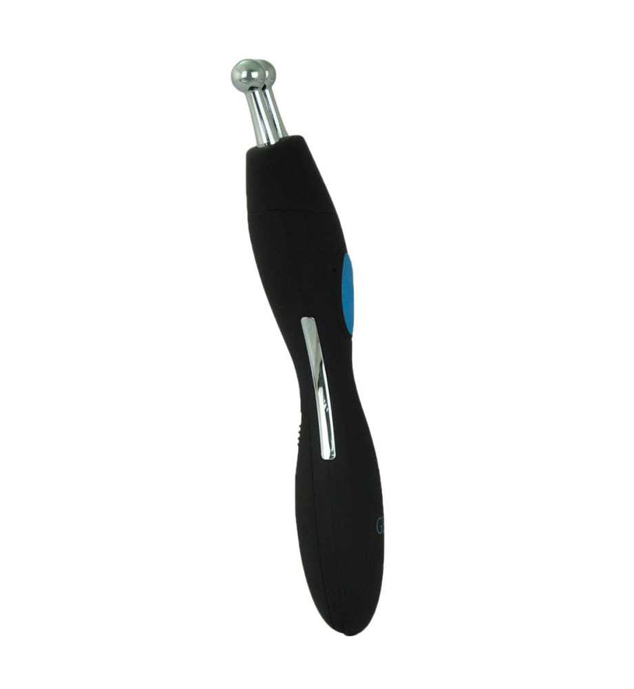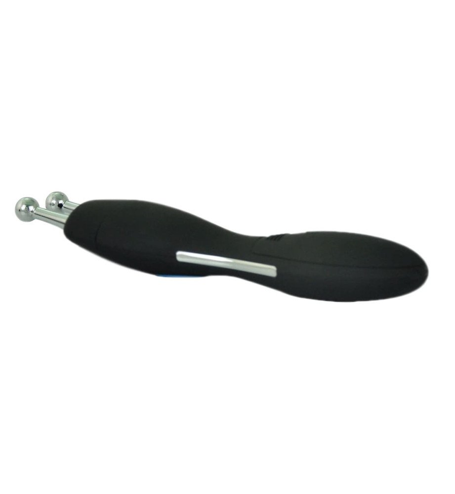 Очень прост и удобен в эксплуатации, беспроводной, работает от батареек (не входят в комплект).Два шарика-электрода генерируют электрический ток, удобная панель управления прибором расположена прямо на корпусе, что позволяет самостоятельно регулировать мощность импульсов.